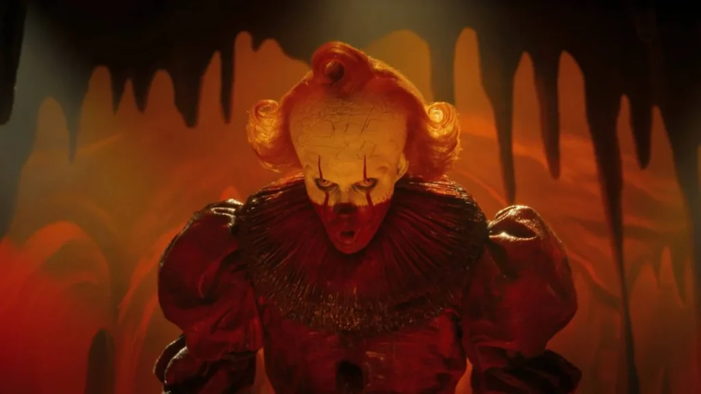 E, claro, há Bill Skarsgård. Seu Pennywise é utilizado com parcimônia, e essa escolha se mostra acertada. Mesmo ausente, o personagem é constantemente sentido, nos silêncios, nas escolhas, nos medos dos habitantes de Derry. Quando surge, não é apenas como monstro, mas como força da natureza, algo inevitável. Skarsgård eleva o material sempre que aparece, reforçando que Pennywise não é um vilão episódico, mas uma presença ancestral.