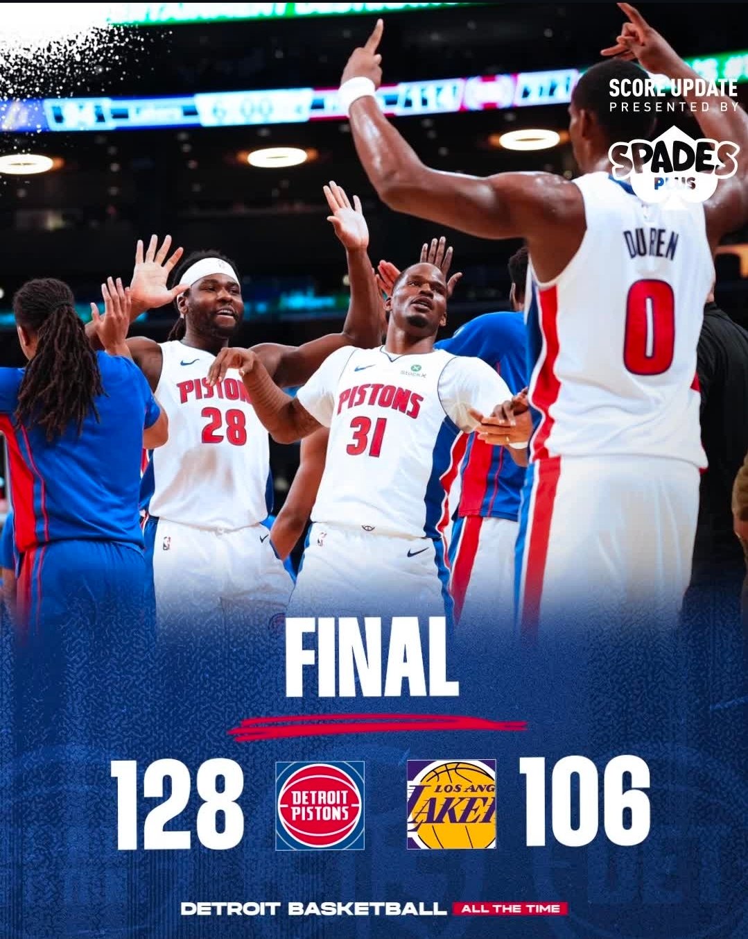 4º Q: Pistons 32 x 18 Lakers (Final: 128 x 106)