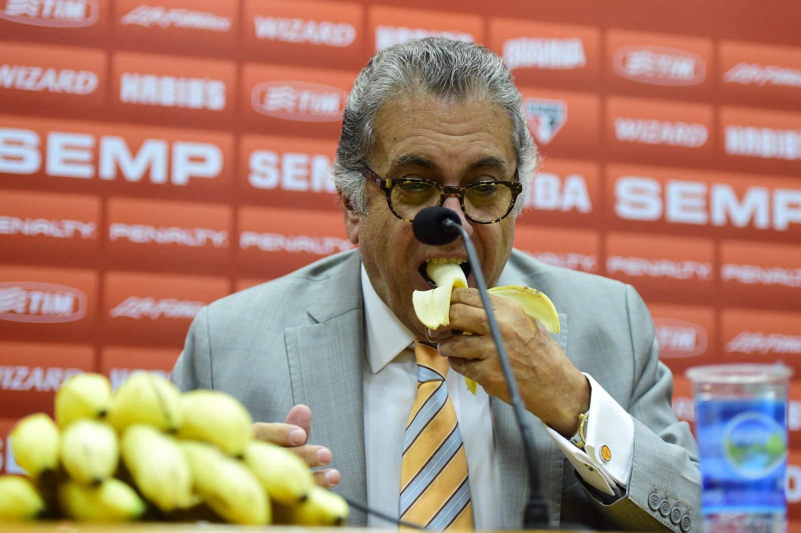 A resposta de Aidar veio no dia seguinte. Mas não apenas em palavras. Ao aparecer diante da imprensa com bananas nas mãos e consumi-las durante a entrevista, o presidente do São Paulo adotou um tom provocativo, ainda que tentasse enquadrar o gesto em outra narrativa. Em meio às justificativas, disparou uma frase que o tempo trataria de ressignificar: