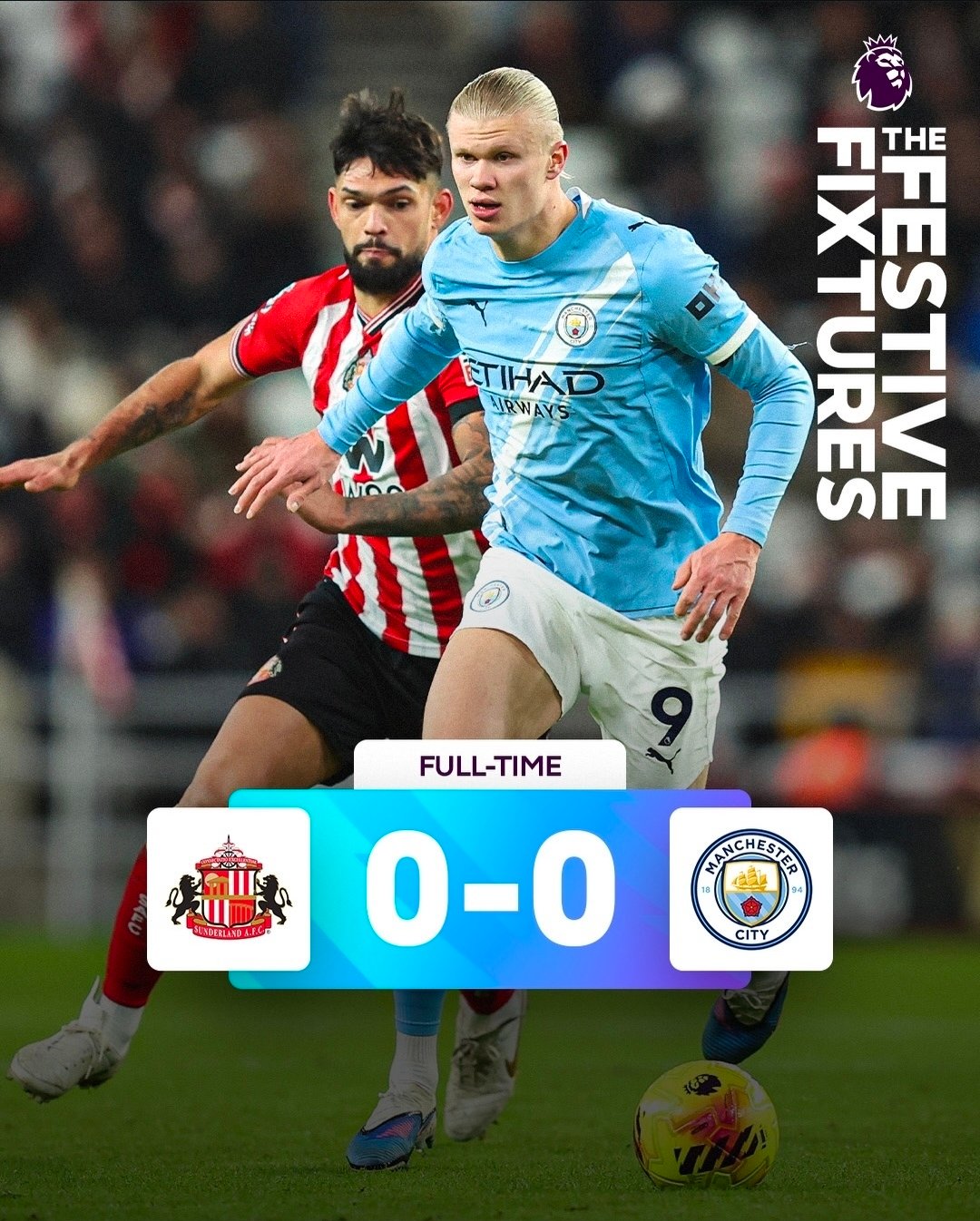 O Manchester City teve amplo domínio da partida, mas não fui o suficiente para balançar as redes, ainda mais com atuação esplêndida do goleiro Robin Roefs (Sunderland), destaque da partida. Com o empate, os citizens ficaram mais distantes de colar no Arsenal, líder da competição por 4 pontos a mais.