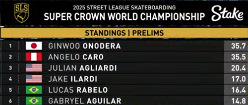 Com a tabela final, Angelo e Ginwoo aguardam o final das duas baterias restantes para saber se estarão na grande final do Super Crown, Julian Agliardi e Jake Ilardi tem chances remotas de conseguirem a classificação.