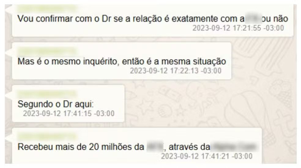 Segundo os investigadores, o conteúdo sugere negociações para interromper ou arquivar inquéritos envolvendo suspeitas de corrupção e lavagem de dinheiro.