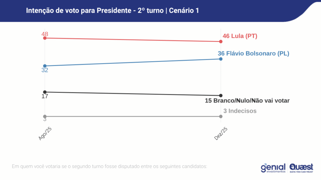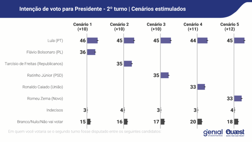 LEIA TAMBÉM: Sem Jair Bolsonaro, Flávio aparece em segundo e Lula mantém vantagem, diz Quaest